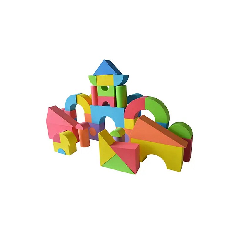 Тухлите са изработени от мека, издръжлива и лека пяна, което прави сградата по -безопасна и по -удобна за деца.