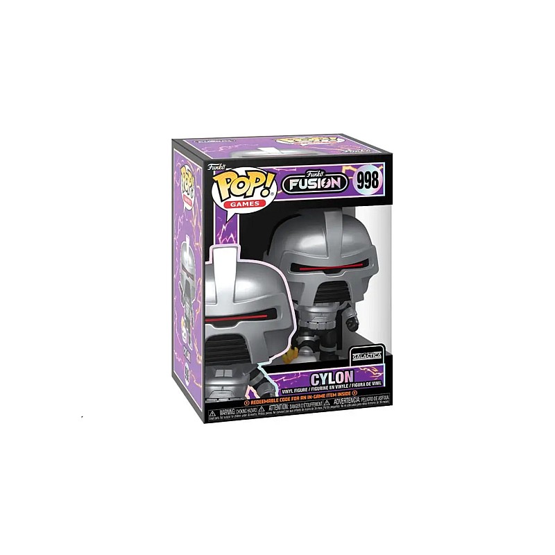 Cylon фигура #998 е изобразена в характерния стилизиран и симпатичен стил на Funko Pop!, но запазва ключови детайли като роботизираната броня и емблематичното червено око, което символизира централното око на Cylon.