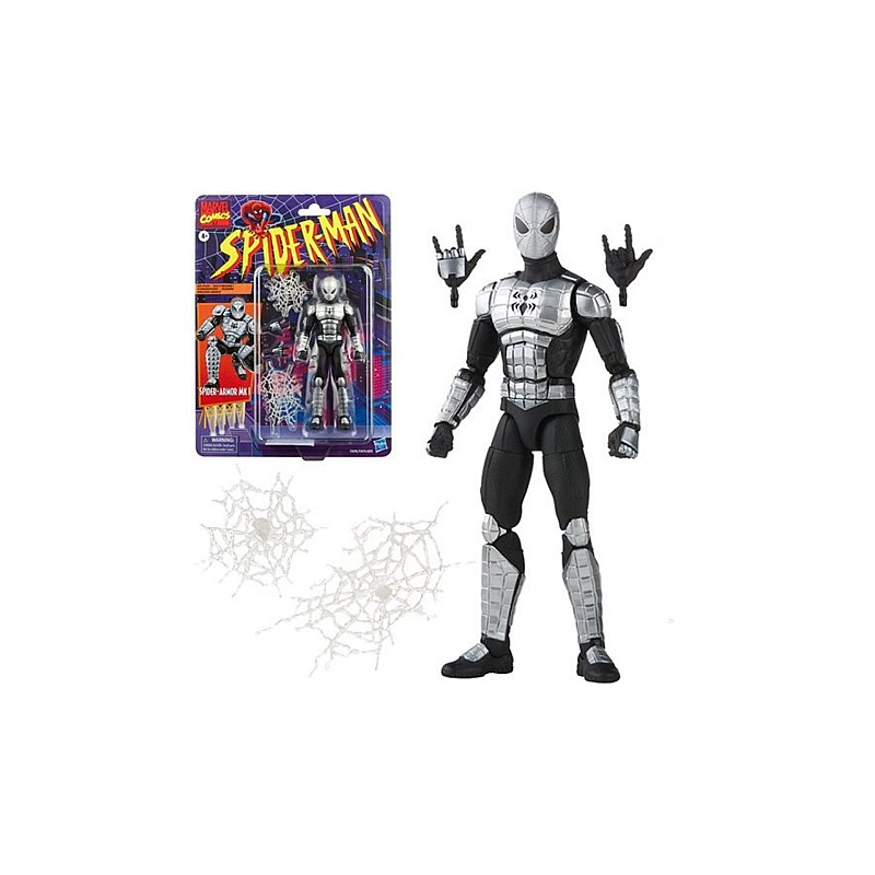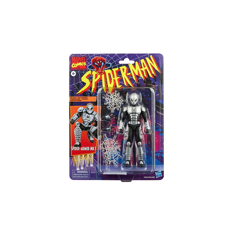 Включва: фигура на Спайдърмен, карта в ретро стил, вдъхновена от класическия дизайн на Marvel Toy Biz и други аксесоари.