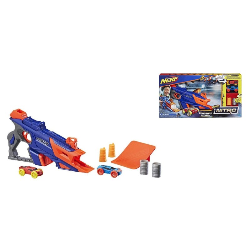 С комплекта Nerf Nitro LongShot Smash от Nerf Nitro децата могат да проектират предизвикателства за дълъг скок с рампата за дълъг скок и препятствия.