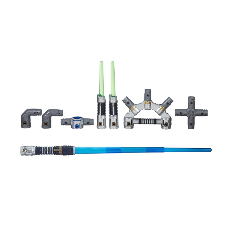 Светлинният меч Jedi Master се доставя с основен светлинен меч със светлини и звуци, две светлинни кинжали с независимо осветление, разширителна дръжка, два лакътни конектора, двоен конектор и кръстосан конектор.
