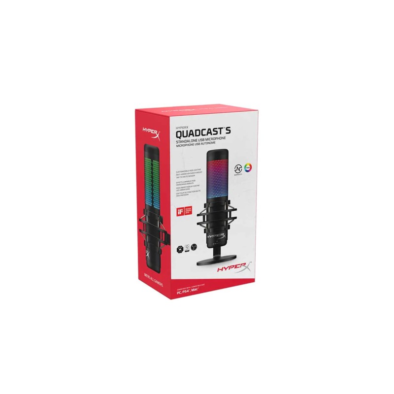 HyperX QuadCast е идеалният всеобхватен самостоятелен микрофон за амбициозния стриймър или подкастър, който търси качествено звучащ кондензаторен микрофон.