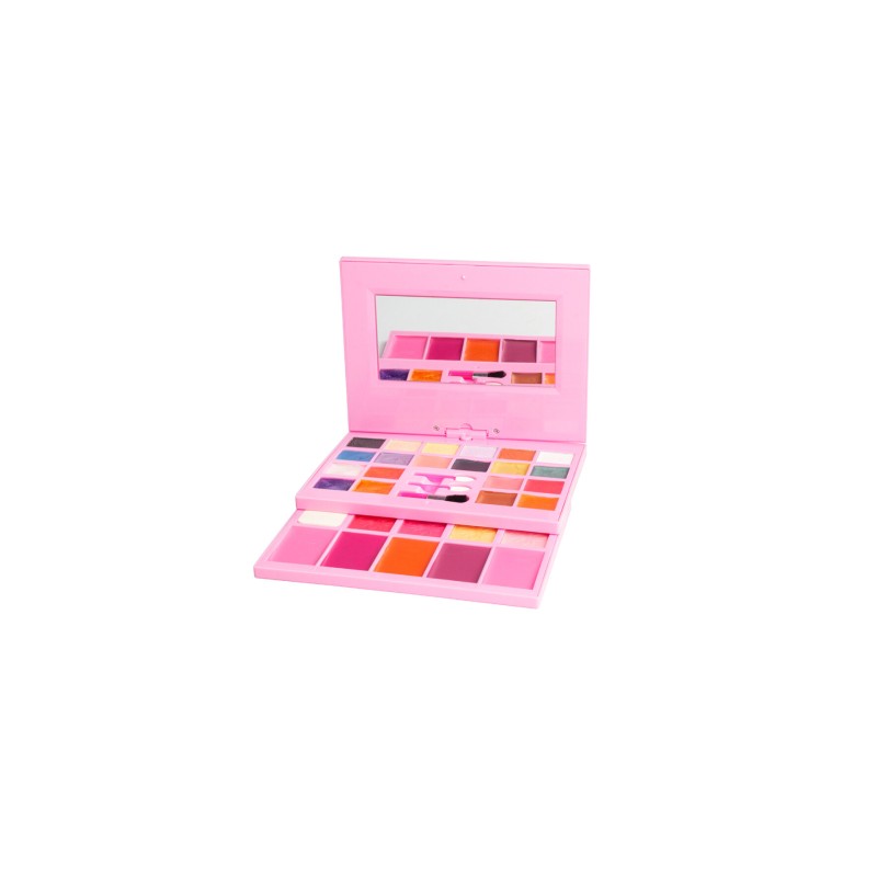 Кутията съдържа всичко необходимо за перфектен грим, от руж и сенки за очи в няколко цвята, до гланц за устни и червило в различни нюанси.