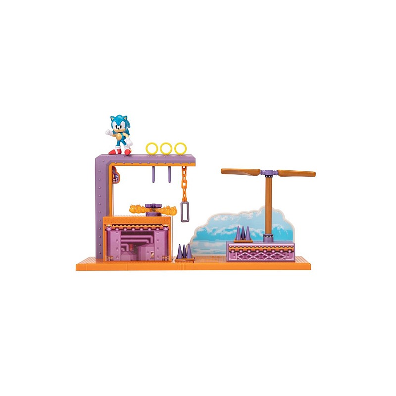 Изградете своя комплект за игра Flying Battery Zone в свят на Sonic, като добавите още фигурки на Sonic the Hedgehog и аксесоари от JAKKS Pacific, Inc. (всяка се продава отделно).