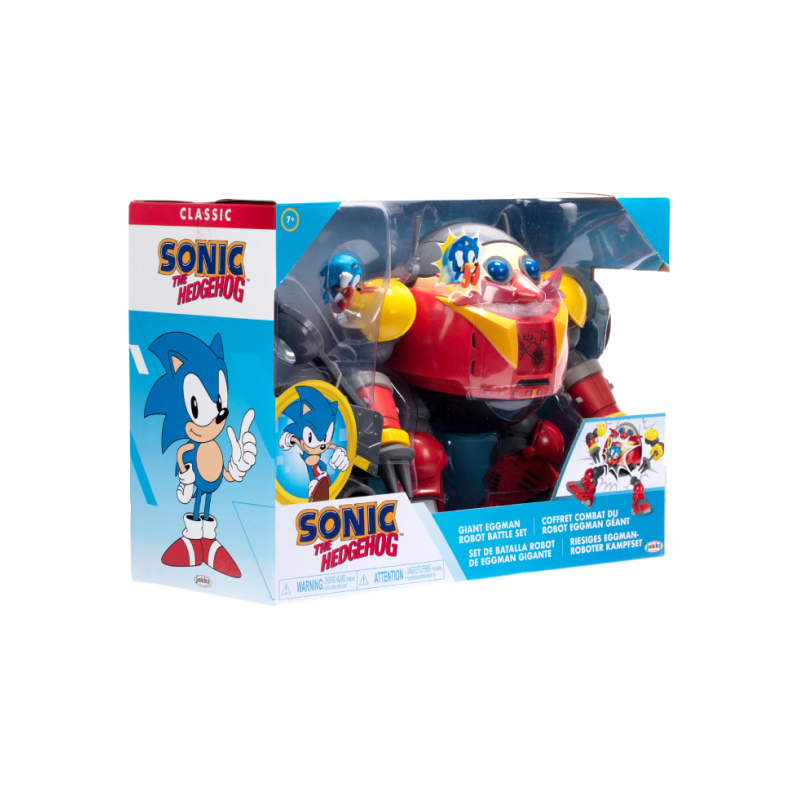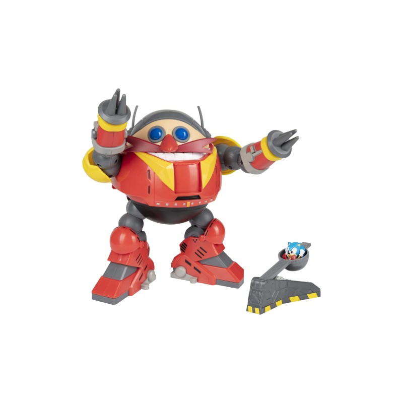 Пресъздайте действието от играта Sonic The Hedgehog с този боен комплект. Изстреляйте Sonic с катапулта в гигантския робот Eggman.
