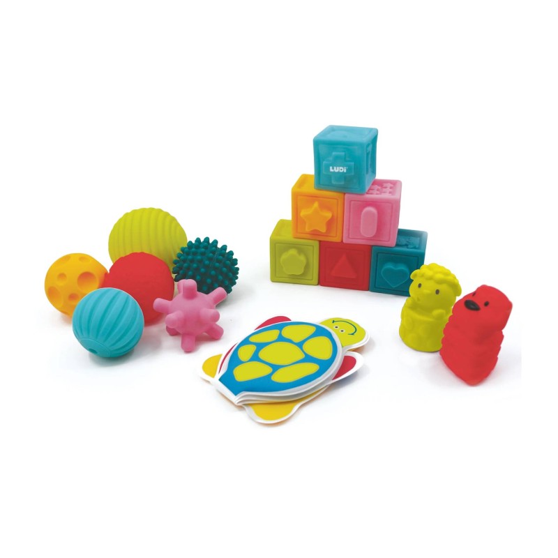 Всички играчки имат различни повърхности и са лесни за хващане, което стимулира усещането за допир, сръчността, координацията, двигателните умения и търпението на вашето бебе.