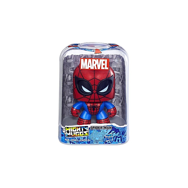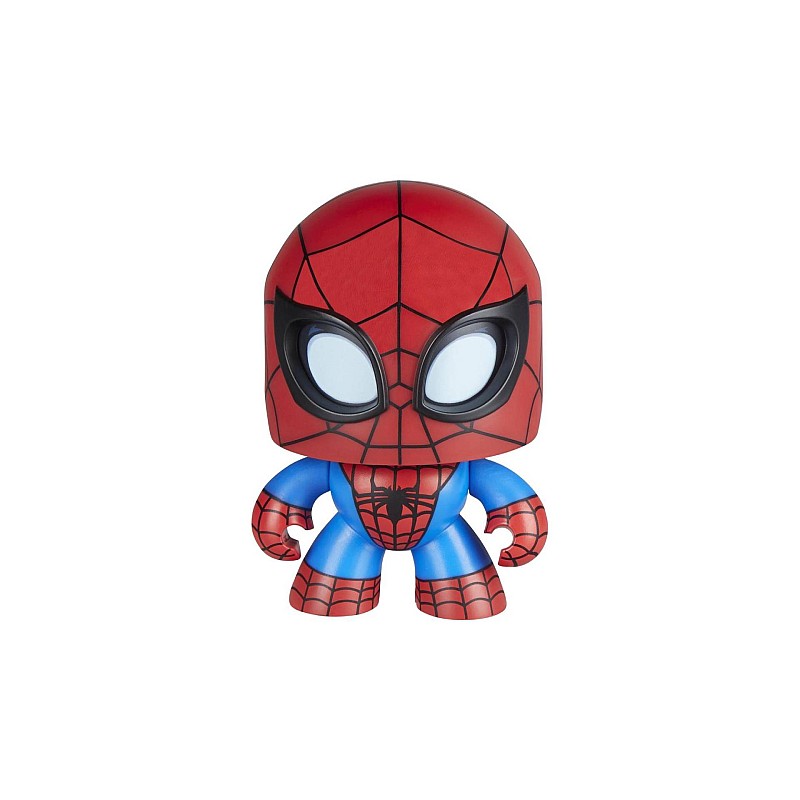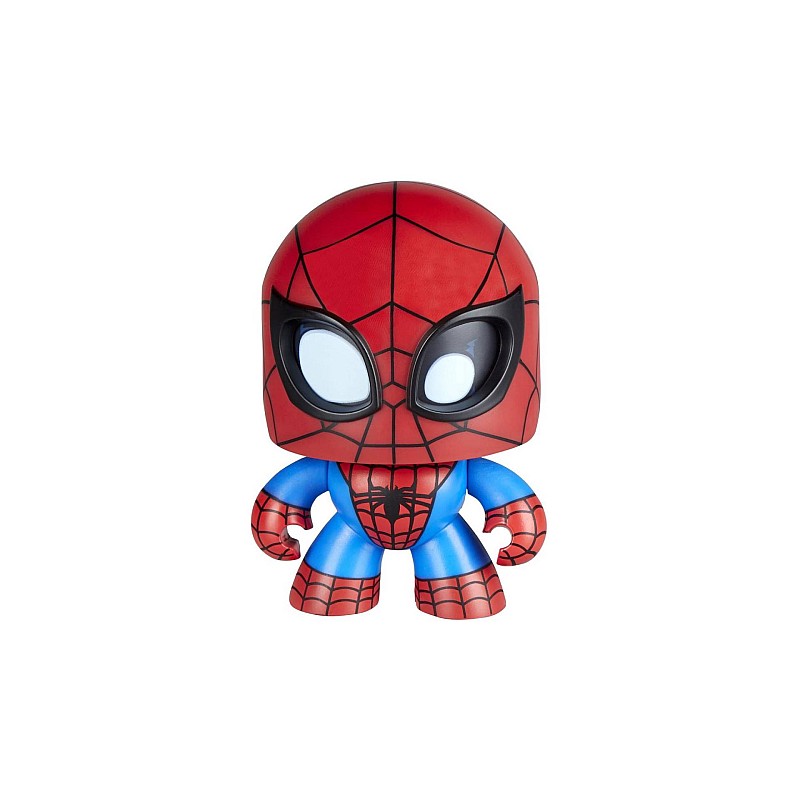 Тази фигура на Mighty Muggs Spider-Man разполага с механизъм за натискане и завъртане. Децата и феновете могат да натискат бутона многократно, за да накарат главата на Спайди да се завърти!