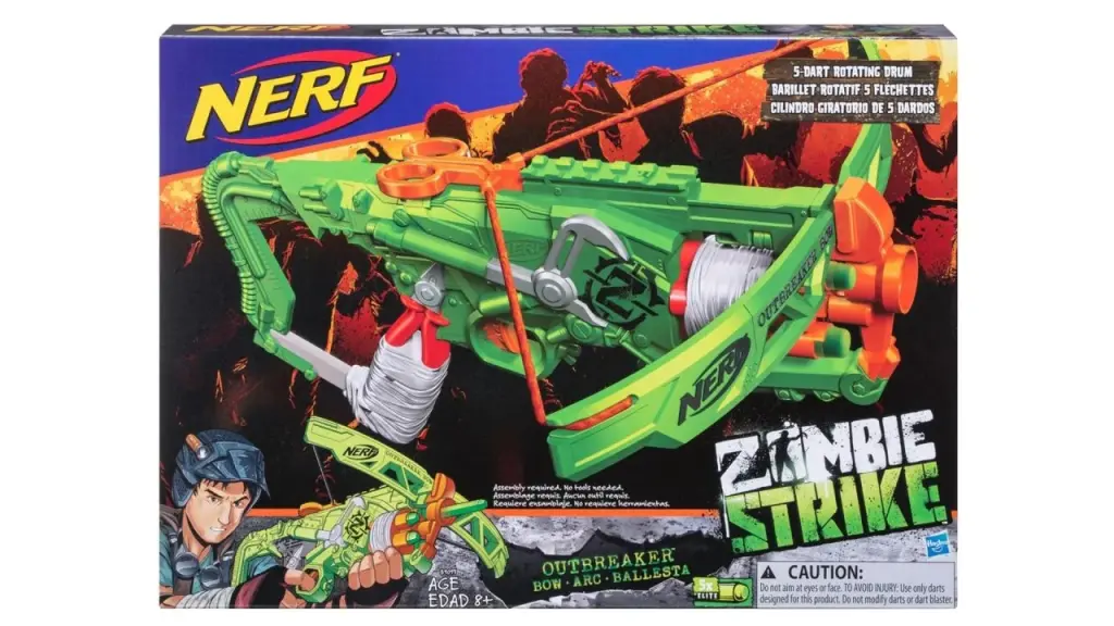Арбалетът Nerf Zombie Strike Outbreaker изстрелва един снаряд и включва 5 снаряда Zombie Strike.