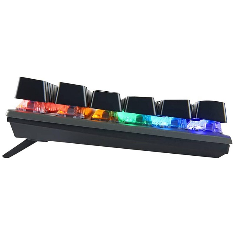 Той разполага с оформление в пълен размер, предназначено за бърз достъп до мултимедийни клавиши, а режимът за игри деактивира клавиша Windows директно.
