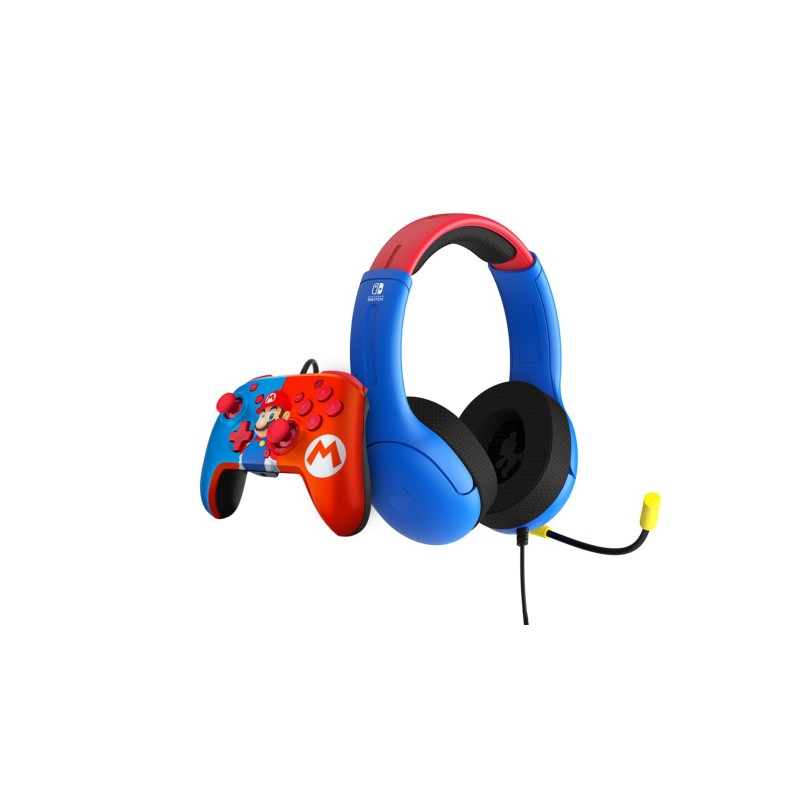 Потопете се в завладяващия свят на Марио с слушалките Mario Bundle Airlite и контролера Mario Power Pose за Nintendo Switch.
