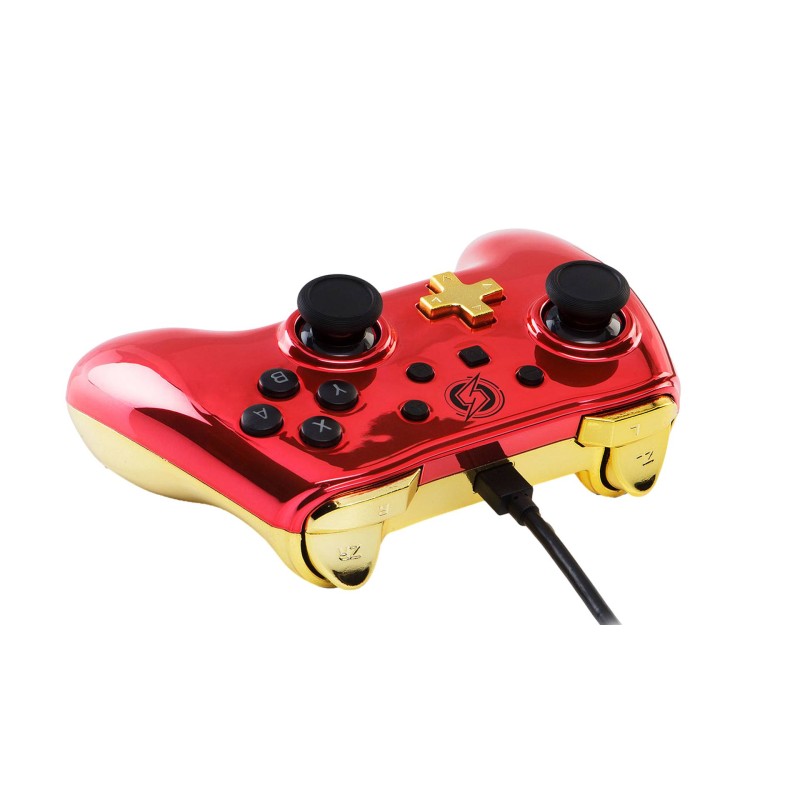 Контролерът Samus Chrome Edition за Nintendo Switch включва червени и златни цветове в удивителен хромиран дизайн.