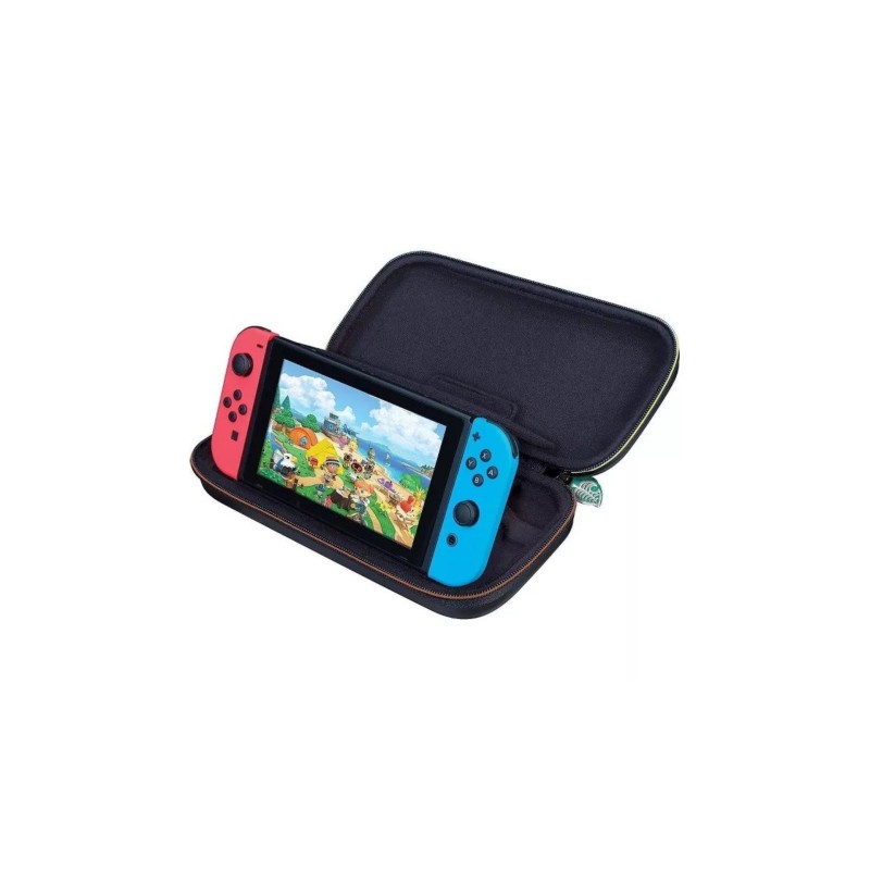 Твърд материал за максимална защита, вградена регулируема стойка съхранява конзола с прикрепени контролери Joy-Con.