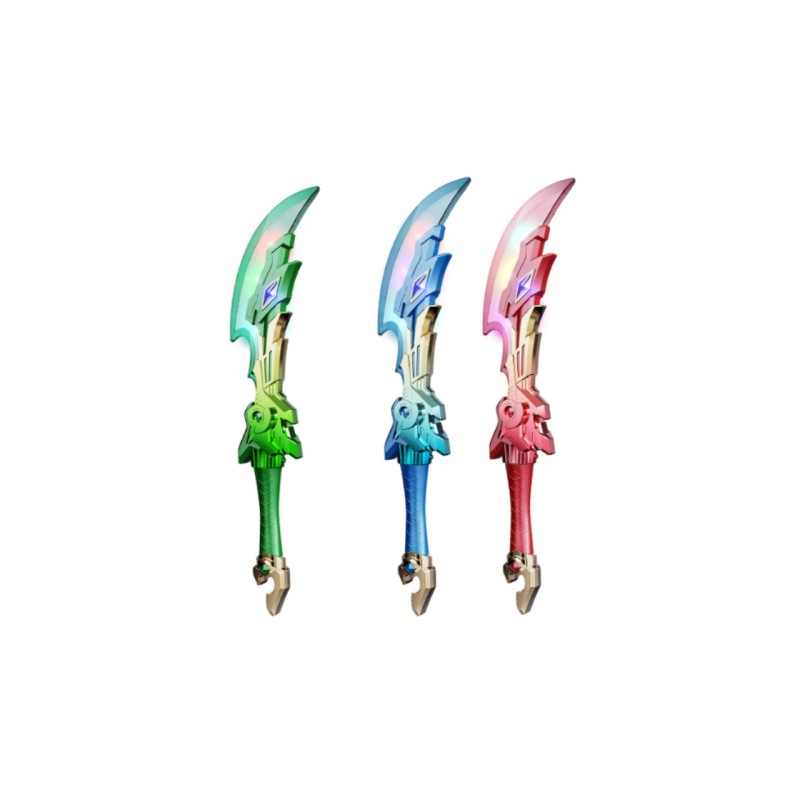 Той включва завладяващи звукови ефекти, които се активират по време на употреба, осигурявайки автентично и завладяващо игрово изживяване. Режещи или бойни звуци добавят към реализма и повишават забавлението.