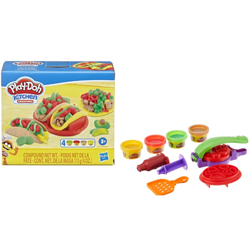 Направете всеки ден тако вторник с Play-Doh Taco Time. Сега децата могат да създават свои собствени такос с инструменти и цветове Play-Doh.