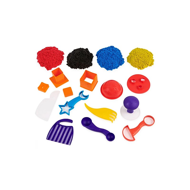 Включените 10+ инструмента, форми и 2lbs пясък ви позволяват да трансформирате Kinetic Sand както никога досега. Смесвайте, режете, дърпайте, оформяйте, издълбавайте, смачквайте и разкривайте изненадващи дизайни.