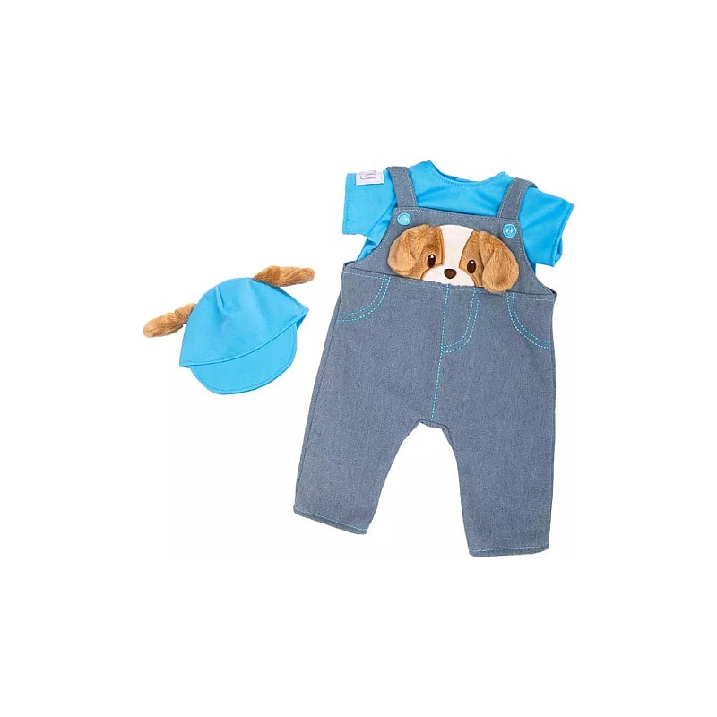 Облеклото включва също мека синя тениска и супер сладка синя шапка с подходящи меки кафяви уши, които ще направят вашата кукла да изглежда точно като игриво кученце.