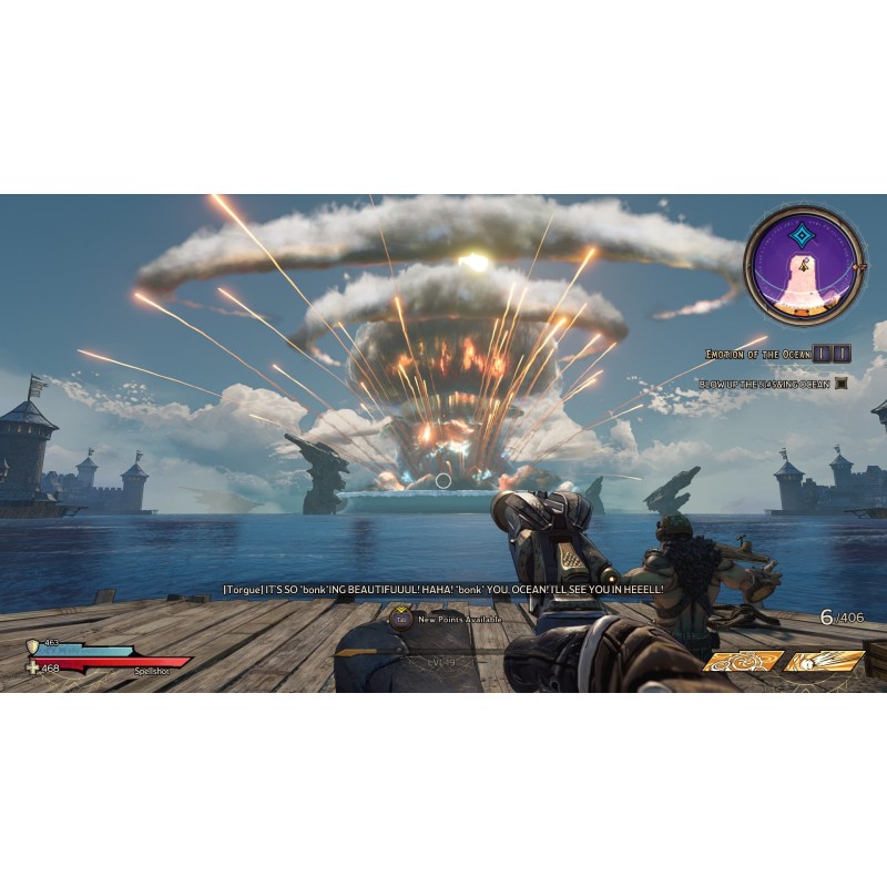 - Use your firepower to defeat legions of enemies, including babbling skeletons, land-roaming sharks and colossal bosses
