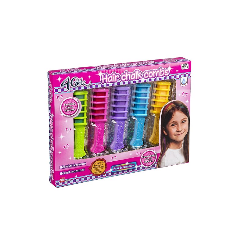 This set includes colored chalk and 5 combs with which children can color their hair in various colors.