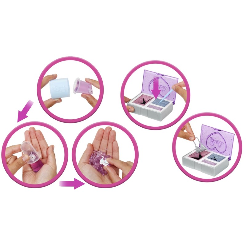 Keep uncovering the mystery "gifts" to reveal the other surprises hidden in the box, tap each section with the included makeup brush to discover Barbie doll's fashion accessories!