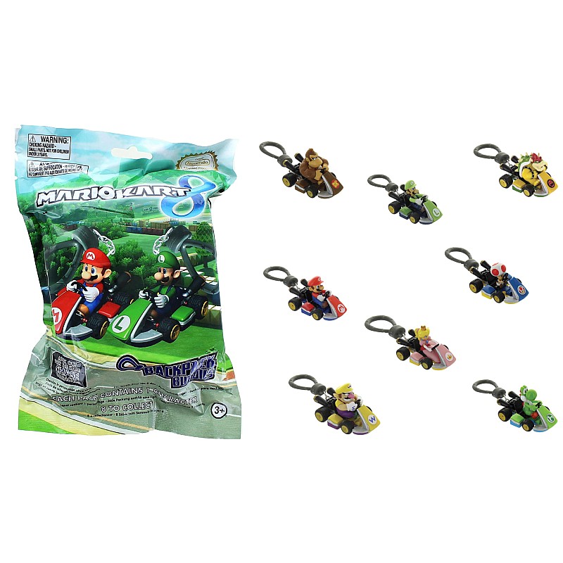 Each pack contains a surprise character from your favorite Mario Kart game, perfect for customizing your backpack or accessories!