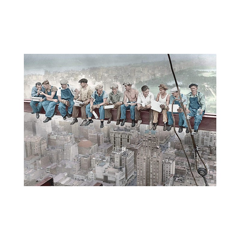 A hand-colored version of the iconic photo of construction workers dining on a partially constructed skyscraper from the Americana collection.