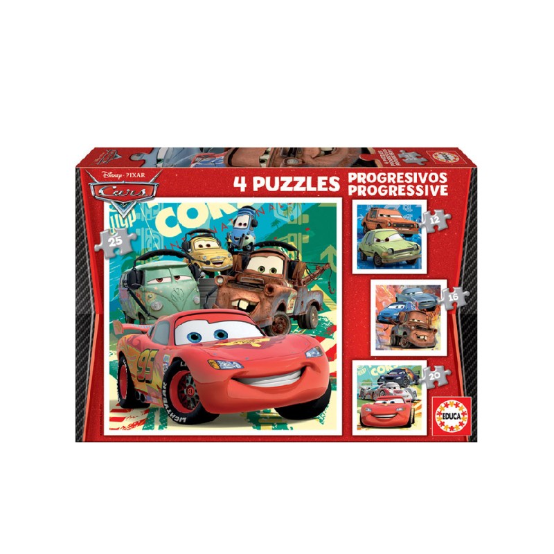 Educa Puzzle 12-16-20-25 Cars (80-14942) is an engaging puzzle set for kids who love the Cars movies and the adventurous world of animated cars.