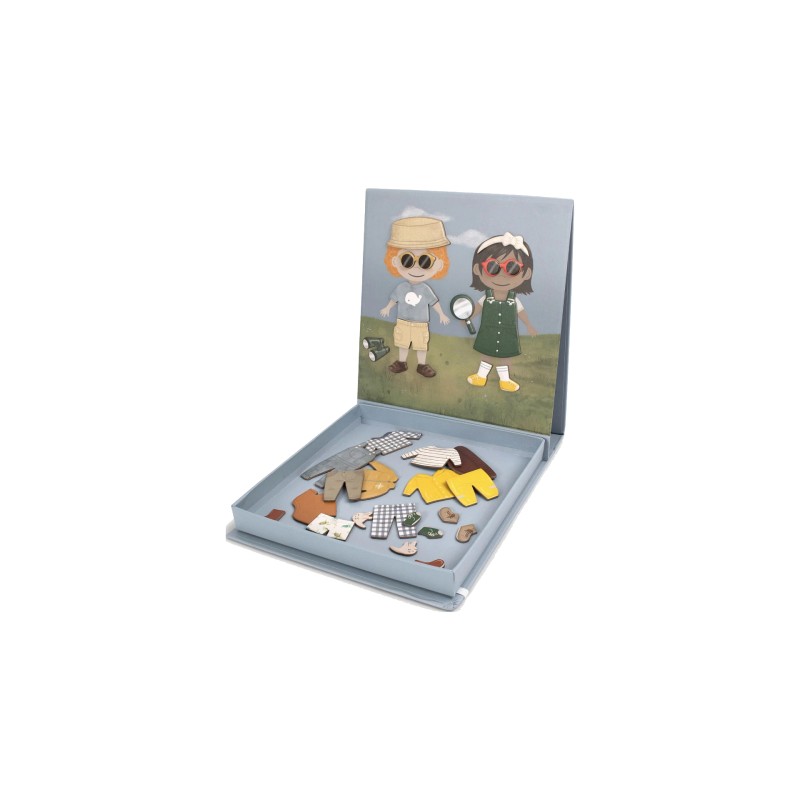 In this fantastic magnetic game, you will help the two children prepare for their adventure.