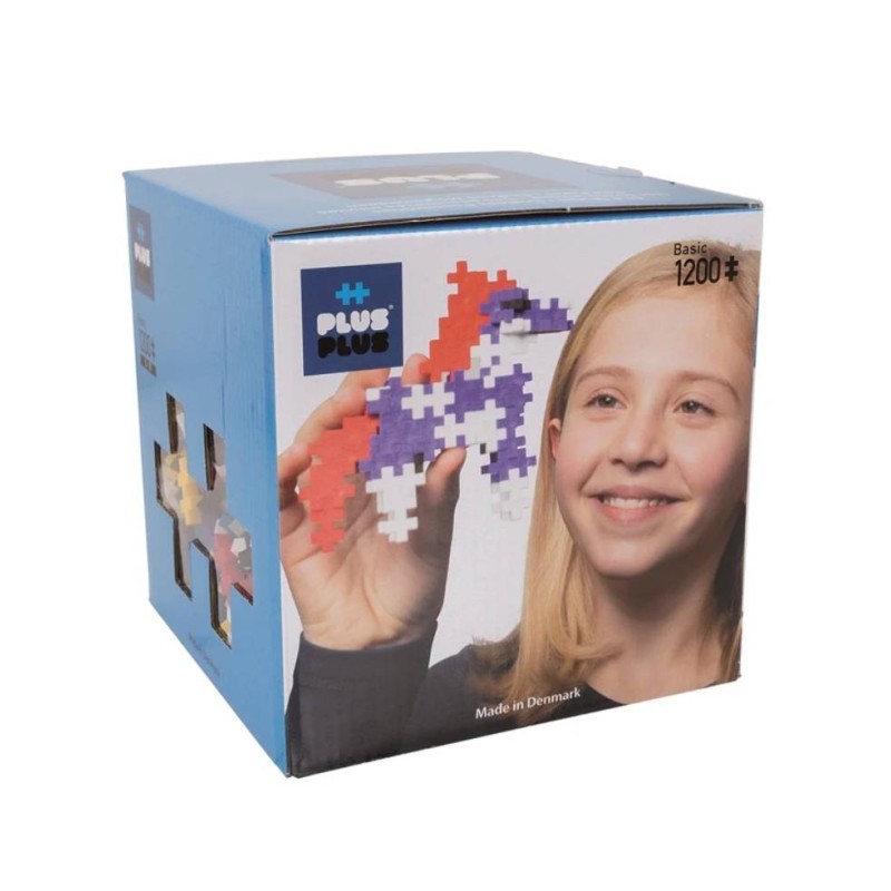 The box contains 1200 Plus-Plus pieces and an inspiration book with simple building instructions to get you started.