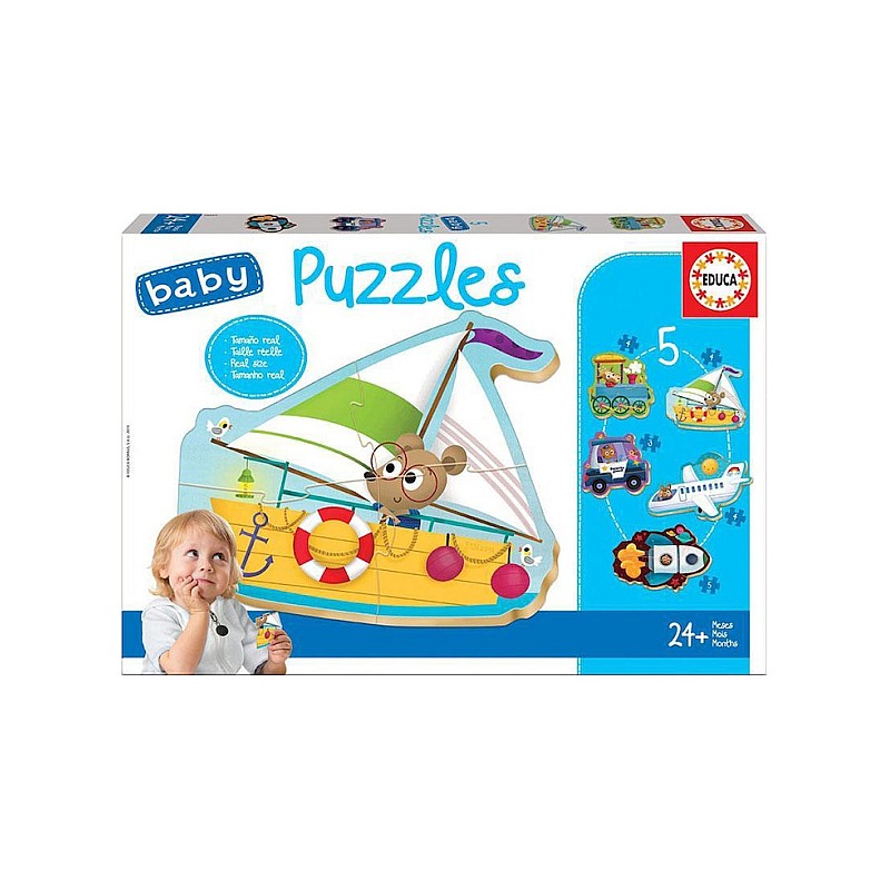 Set of 5 progressive puzzles from 3 to 5 pieces to build and play with authentic figures of your favorite vehicles.