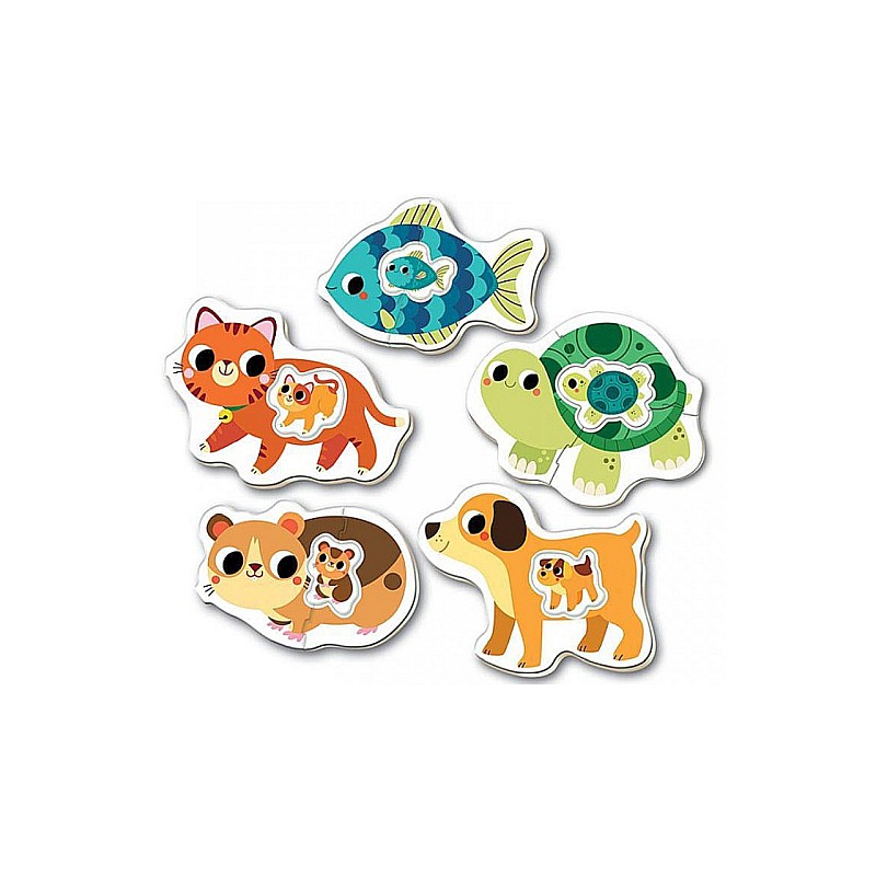 5 progressive puzzles from 2 to 4 pieces, the pieces are bigger, thicker and easier to handle.