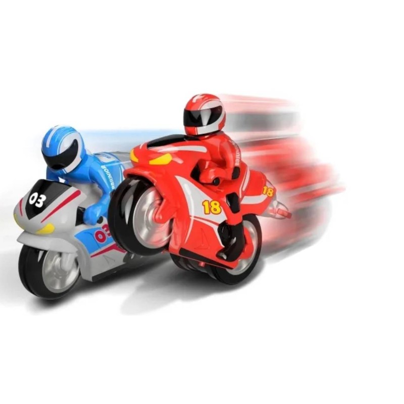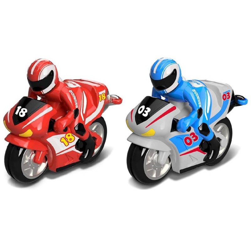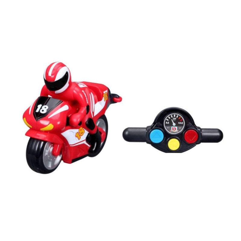 The motorcycle can do all kinds of cool tricks! You control it with the remote control.
