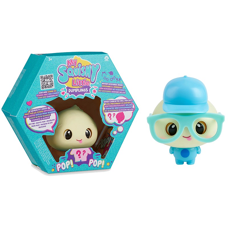 Each little Squishy has its own cute attitude and comes with 2 matching accessories! Dot comes decked out in two accessories - a blue baseball cap and a pair of matching glasses.