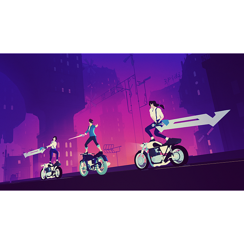 Sayonara Wild Hearts is a dream arcade game about riding motorcycles, skateboarding, dance fighting, shooting lasers, wielding swords and breaking hearts at 200 miles per hour.