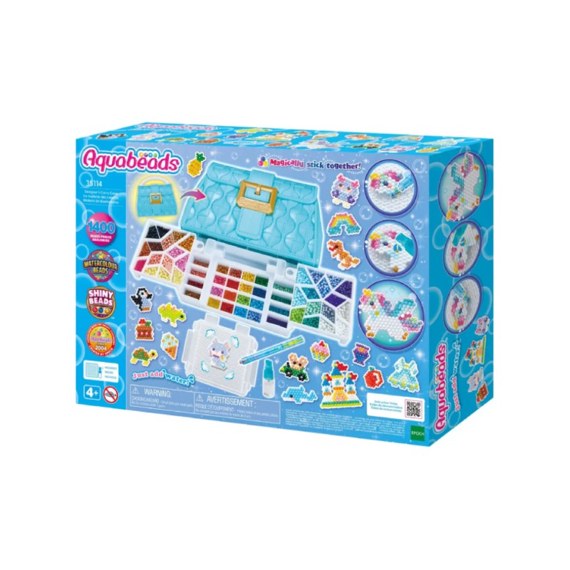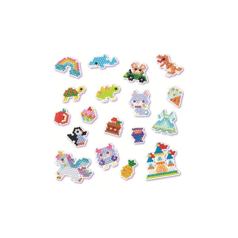 Includes classic beads, gem beads, polygon beads, star beads in 48 colors including the new watercolor beads, create more bead designs with Aquabeads refills sold separately.