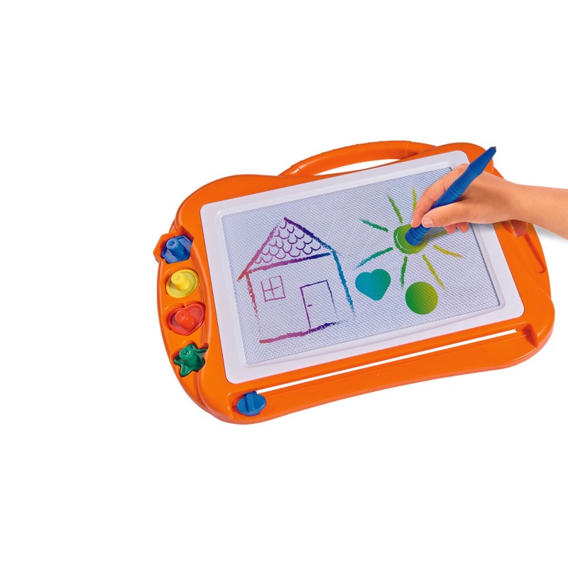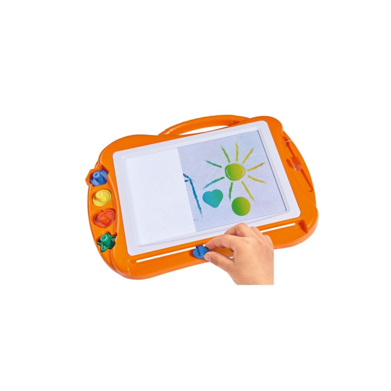 Datorită diverselor culori, imaginea de pe tabla mare de desen pare și mai vie și poate fi decorată suplimentar cu patru ștampile diferite.