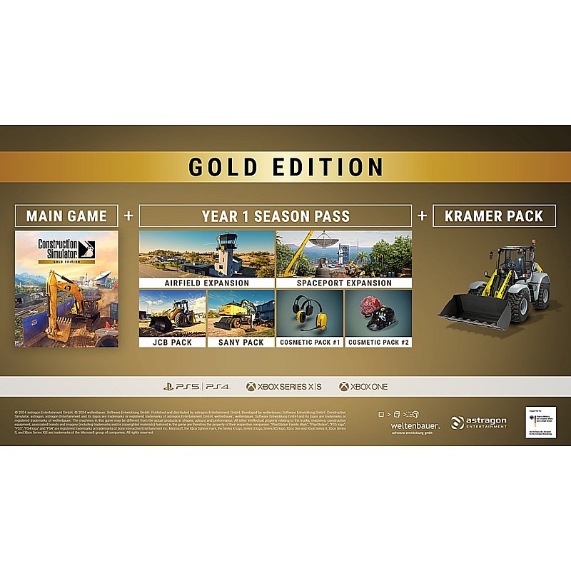 A selection of over 90 machines from 24 licensed manufacturers and more construction fun, but also a lot of additional content that was released before the Gold Edition.