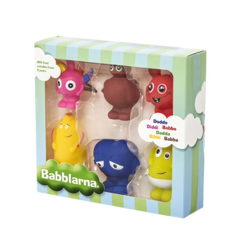 Take Babba, Bibbi, Bobbo, Dadda, Diddi and Doddo on an adventure, each with their own special charm.