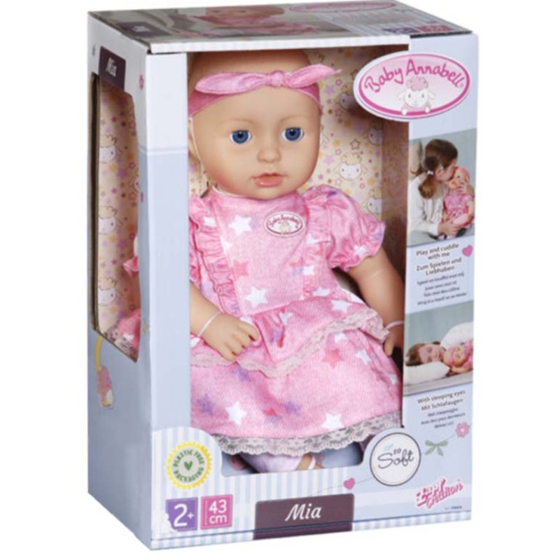 Super cute and cuddly baby Annabell Mia has a soft body, she's just made for cuddles.