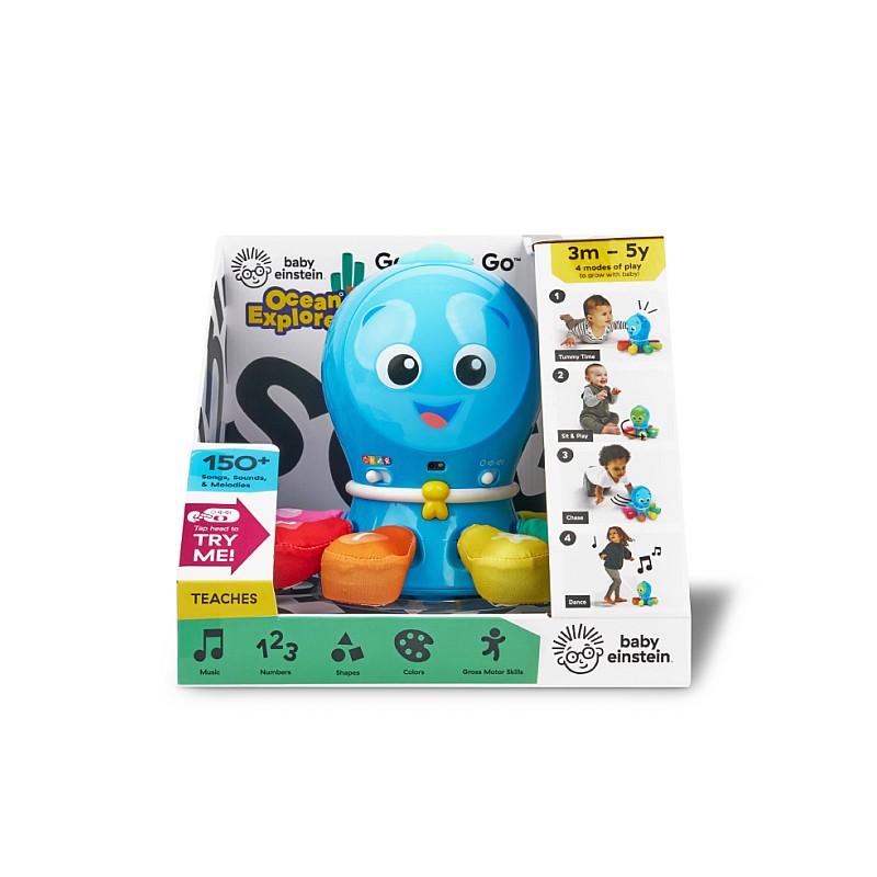 Draw yourself, dance, follow and learn with the Baby Einstein Ocean Explorers Go to toy Go Crawl and Chase Activity Toy.