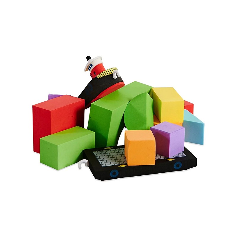 This Bath Blocks set contains a tug boat with a pontoon and blocks with which you can build a bridge, a quay or anything you want.