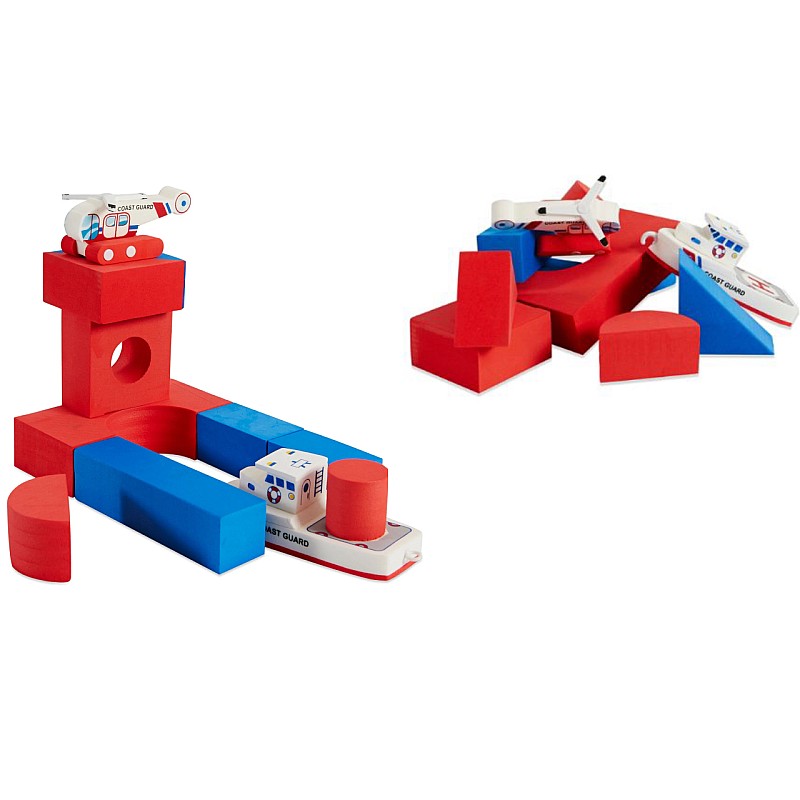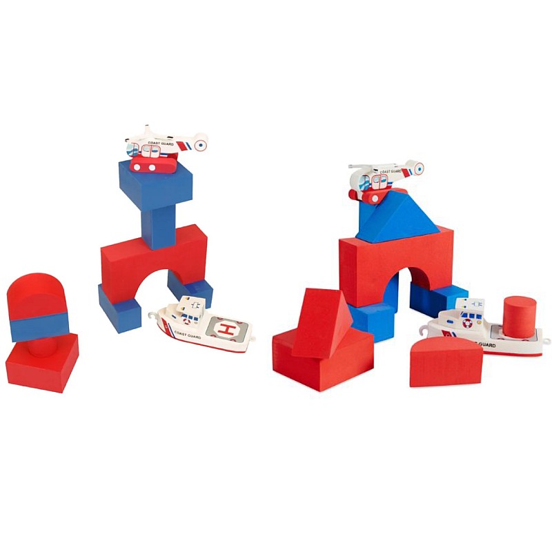 Bath Blocks Coast Guard & Helicopter lets kids build floating bridges, towers and more in the bath.
