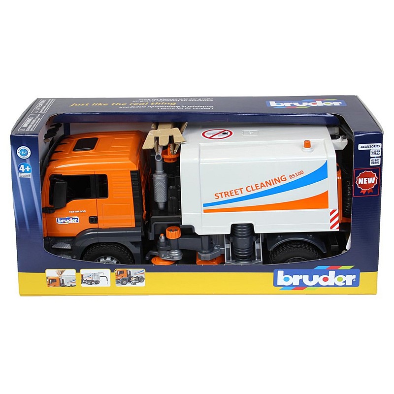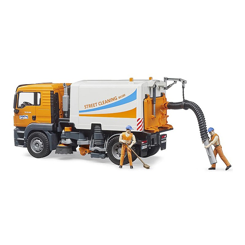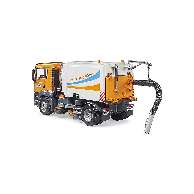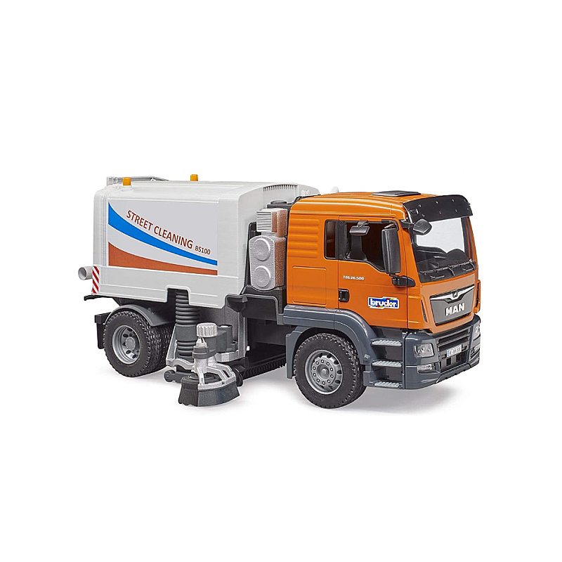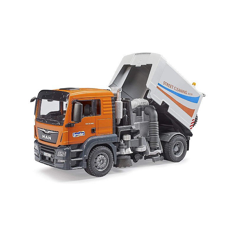 No other vehicle keeps streets and sidewalks clean so effectively. The new street sweeper from BRUDER shows in the highest degree of detail how this exciting truck works.