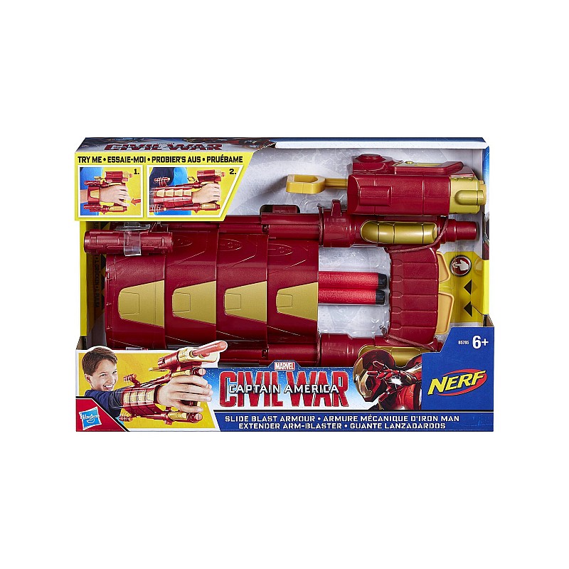 Fight your enemies as Iron Man with this convertible armor and NERF blaster.