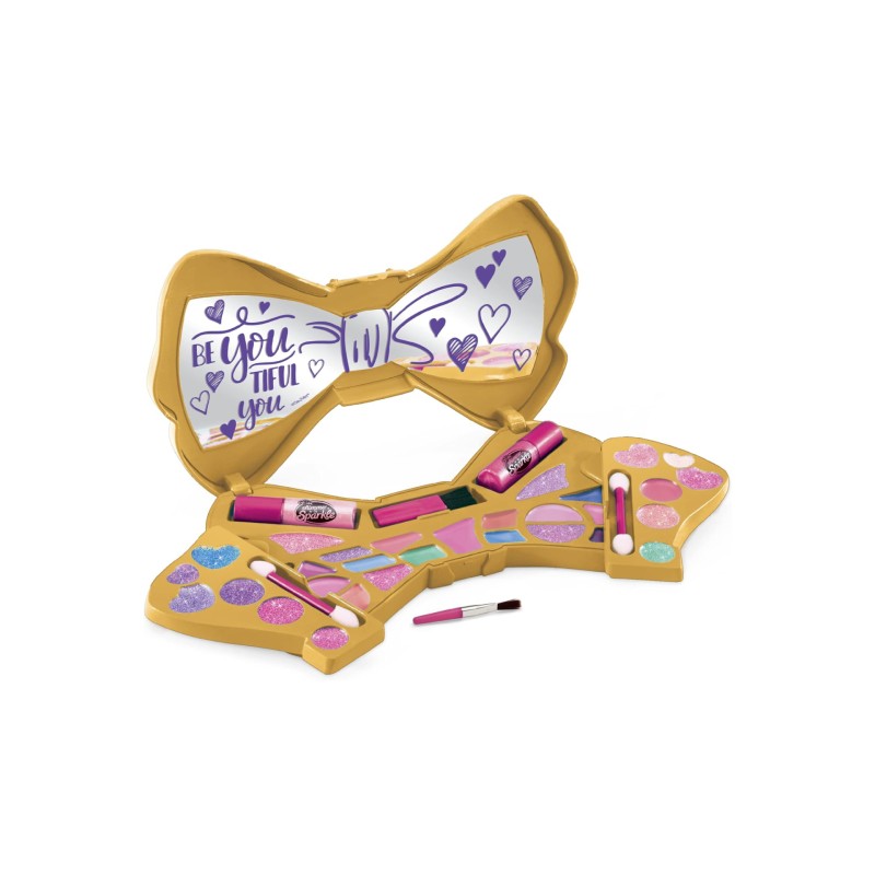 The elegant Shimmer'n Sparkle Bow Beautiful Compact makeup set in the shape of a bow makes you want to be the best fashion star.