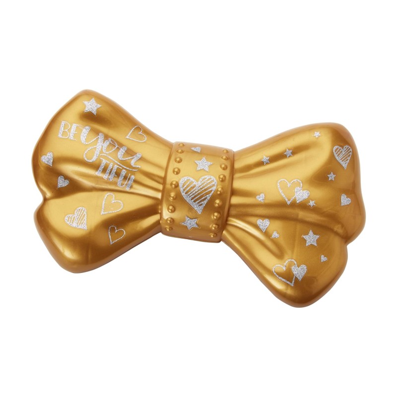 The makeup is contained in a gorgeous compact bow shape with a metallic gold finish. The flexible format makes it easy to store and take with you.