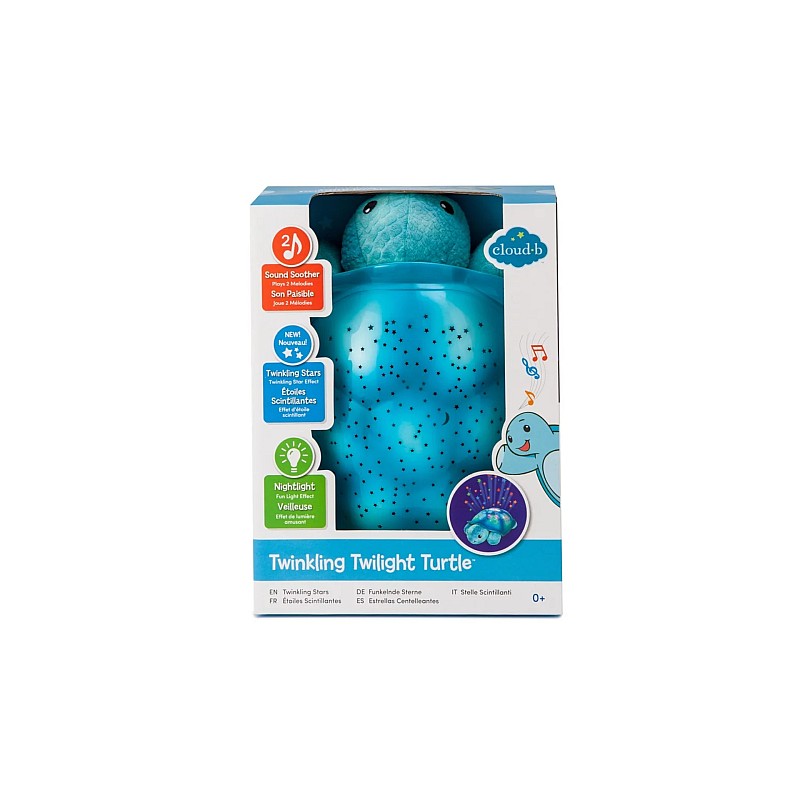 The Twilight Twinkling Turtle illustrated star guide helps you spot Ursa Minor and Ursa Major twinkling above you. The lamp projects a starry sky - 8 constellations - onto the ceiling and walls of your child's room.