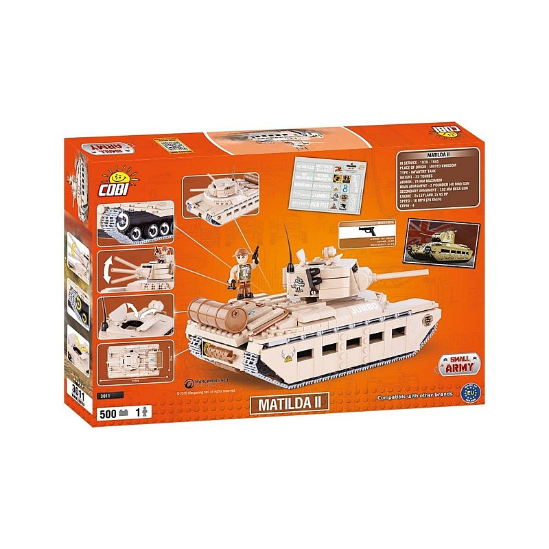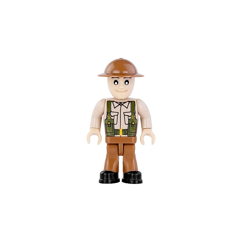 The building block version has a rotating turret and adjustable cannon, operable hatch, a pistol and binoculars.