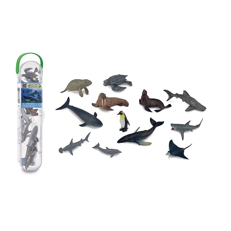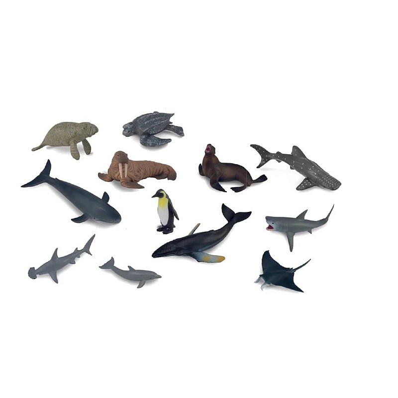 Fantastic sea animal set that includes everything from the Blue Whale, Great White Shark, Humpback Whale, Bottlenose Dolphin, to the Sea Lion and the Cloaked Back Sea Turtle.