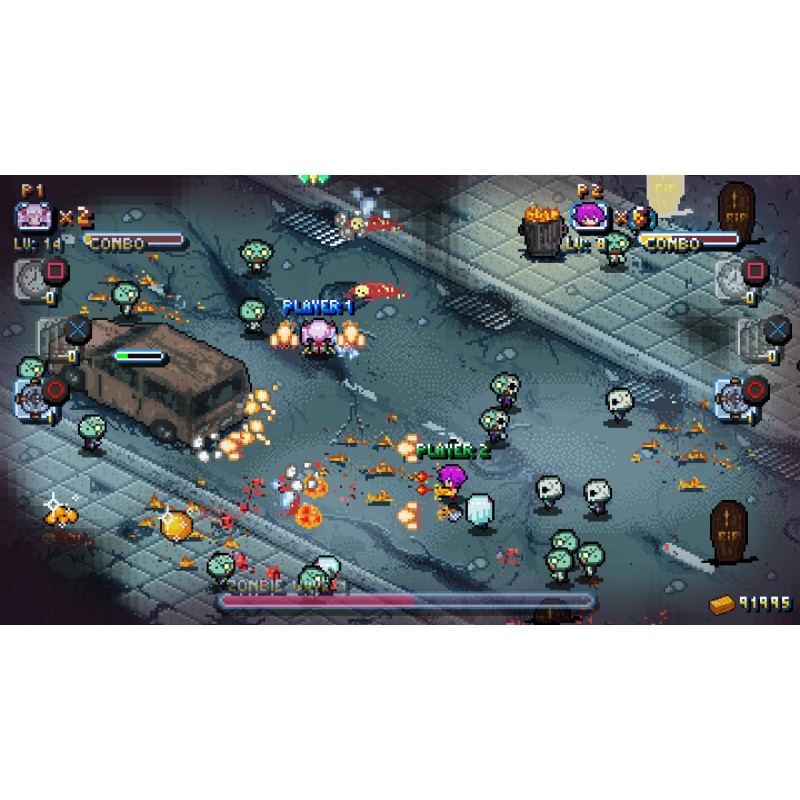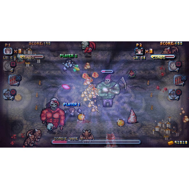 Riddled Corpses EX is a twin-stick shooter made in the style of 8/16-bit arcade games.