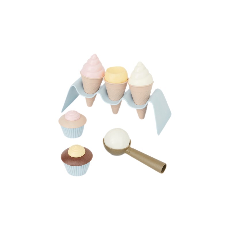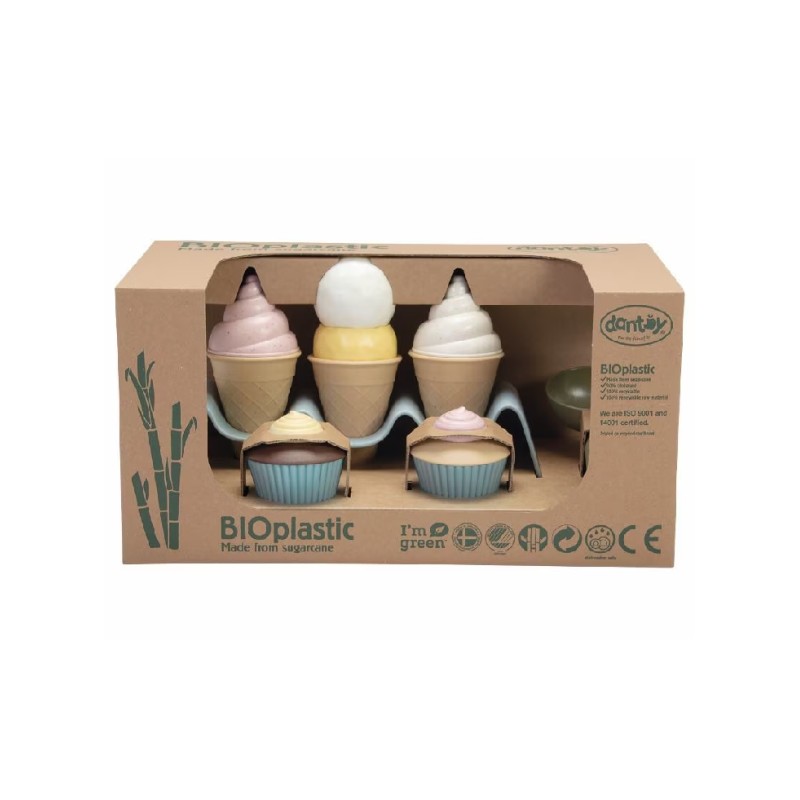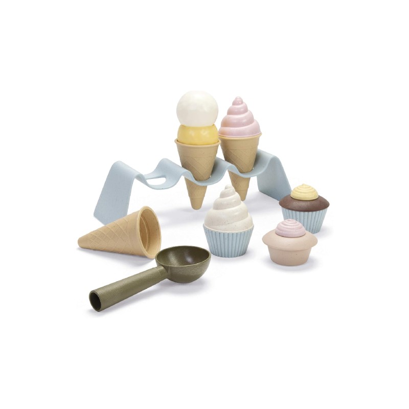Dantoy's delicious 15-piece ice cream playset in natural colors, made from eco-labeled Nordic Swan bioplastic.